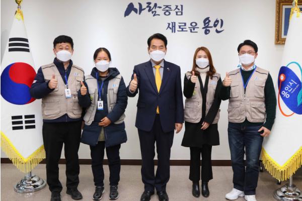 [KNT한국뉴스타임] 백군기 용인시장은 지난 11일 시청 시장실에서 9개월간의 체납징수 활동을 마감한 체납관리단 대표 4명을 격려했다.