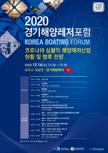 [KNT한국뉴스타임] 해양레저산업의 지속 성장을 도모하기 위한 대표적인 해양레저포럼인 '2020 경기해양레저포럼'이 16일 오후 1시 30분 개최된다. 유튜브 ‘경기해양레저’ 채널을 통해 생중계된다.