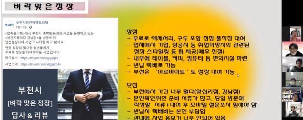 박화복 아동청소년과장은 “코로나19로 모두 힘든 시기에도 청년정책협의회의 꾸준한 활동에 감사하다”면서 “청년정책협의체가 부천 청년들의 어려움과 의견을 전달하고 제안하는 다양한 활동을 통해 청년정책 시정참여 기구로 자리매김하길 바란다”고 밝혔다.