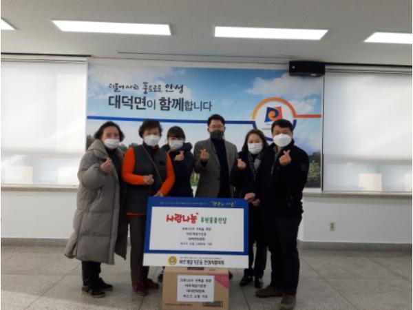 [KNT한국뉴스타임] 안성시 바르게살기운동 대덕면위원회가 지난 14일 대덕면 관내 학교에 전달해 달라며 어린이용 마스크 3000매를 기부했다.
