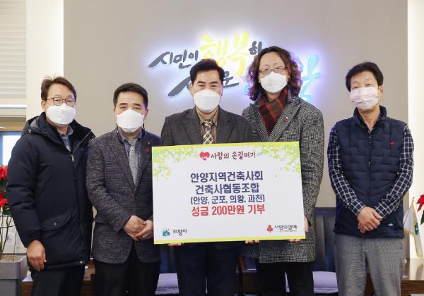 안양지역건축사회(회장 이재진)에서 코로나19로 인해 어려움을 겪고 있는 저소득층을 위해 사용해 달라며 14일 의왕시에 성금 200만원을 전달했다.