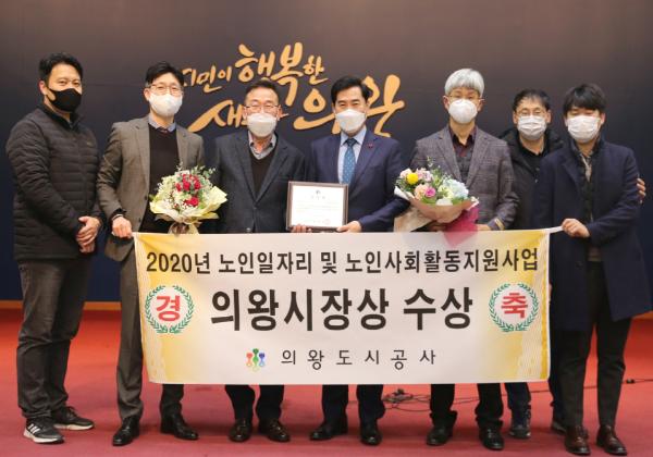 [KNT한국뉴스타임] 의왕도시공사는 지난 10일 대한노인회 의왕시지회, 사랑채노인복지관, 아름채노인복지관, 의왕시니어클럽 등이 주관한‘2020년 노인일자리 및 사회활동지원사업 연합 종결식’에서 의왕시장상을 수상했다.