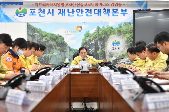 지난 23일 코로나19(신종 코로나바이러스 감염증) 확산 사태와 관련해 정부의 위기경보 단계를 현재 '경계' 단계에서 최고 단계인 '심각'으로 격상됨에 따라 포천시는 지난 23일(일) 긴급대책회의를 개최하여 조기차단을 위한 방역대책을 점검했다.