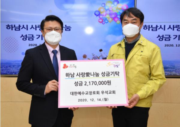 [KNT한국뉴스타임] 하남시는 대한예수교장로회 우석교회가 지난 14일 이웃돕기 성금 217만원을 기탁했다고 밝혔다.