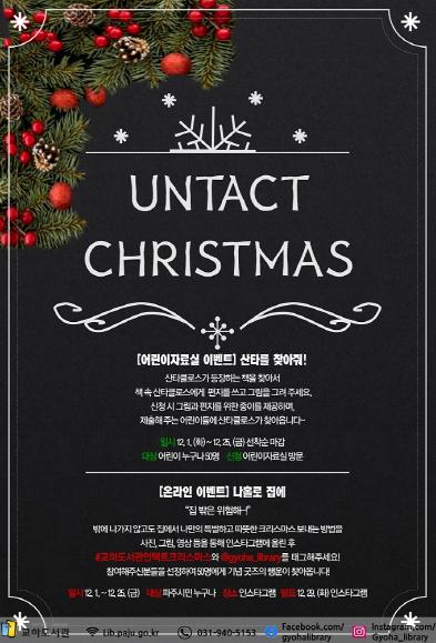 ‘나홀로 집에’ 온라인 크리스마스 이벤트는 밖에 나가지 않고도 집에서 나만의 특별하고 따뜻한 크리스마스를 보내는 방법을 사진, 그림, 영상 등으로 남겨 인스타그램 공개 계정에 #교하도서관언텍트크리스마스, @gyoha_library를 태그해 게시하면 된다.
