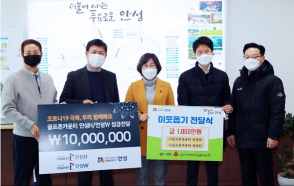 [KNT한국뉴스타임] 안성시는 ㈜골프존카운티 안성W·안성H에서 15일 저소득 아동들을 위한 성금 1000만원을 안성시에 기탁했다고 밝혔다.