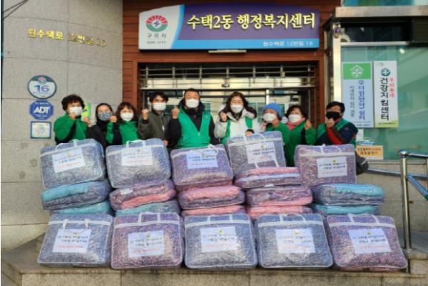 [KNT한국뉴스타임] 구리시에서는 12월 15일 연말연시를 맞이하여 수택2동 새마을지도자(회장 이웅재)와 새마을부녀회 주관으로 독거노인 등 저소득 주민에게 겨울 이불 26채를 전달하였다.