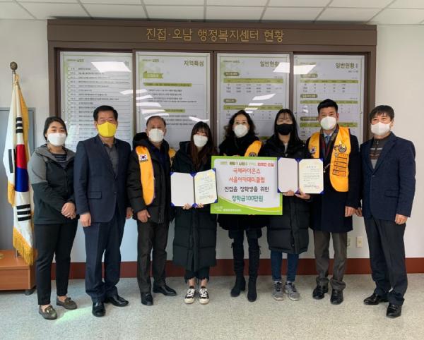 국제라이온스서울아카데미클럽(홍구야 회장)에서 취약계층 인재육성 장학금 100만원을 기탁하고, 지속적이고 정기적인 장학금 후원을 약속했다.