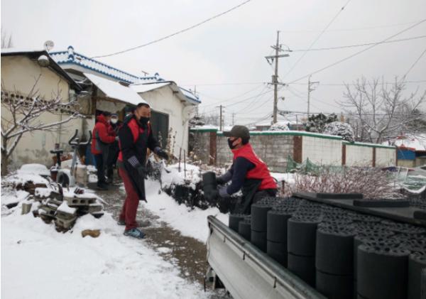 이날 천우회 회원들은 폭설과 영하 8도의 강추위에도 불구하고, 관내 취약계층을 위한 연탄 배달봉사를 하였으며, 각 가구에 200장의 연탄, 백미 1포, 라면 3박스를 직접 배달했다.