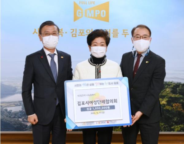 [KNT한국뉴스타임] 김포시여성단체협의회는 지난 11일 코로나19로 어려움을 겪는 이웃을 돕기 위해 김포복지재단의 ‘62일간의 나눔릴레이-코로나19 극복! 우리 함께해요’에 기부금 100만 원을 기부했다고 전했다.