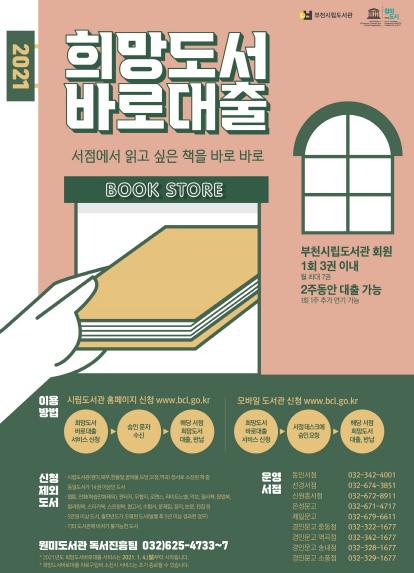 부천시립도서관 통합회원증(모바일회원증 포함)만 있으면 누구나 가까운 동네서점 9개소에서 원하는 새 책을 빌려볼 수 있다. 원하는 도서가 웹툰, 수험서, 잡지 등이거나 시립도서관에서 동일한 도서를 14권 이상 소장하고 있을 경우에는 신청에서 제외된다.