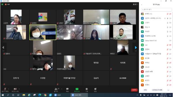이번 주민총회는 코로나19 특수한 상황을 극복하기 위해 참여 인원을 최소화하고자 화상회의 시스템인 줌(ZOOM)을 활용해 진행됐다. 2020년 마을공동체 사업성과를 주민들에게 비대면으로 보고하고 지난 2일부터 11일까지 10일간 진행된 설문조사에서 208명의 주민들이 제시한 사업을 논의했다.
