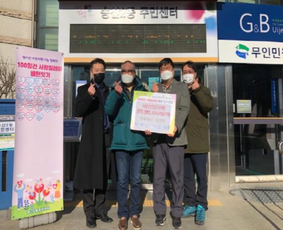 [KNT한국뉴스타임] 의정부시 송산3동 행정복지센터는 의정부 민락신도시카페가 12월 16일 송산3동 복지지원과와 송산2동을 방문해 지역의 어려운 이웃을 위해 써달라며 두루마리 휴지(30롤) 각각 100상자씩 기탁했다고 밝혔다.