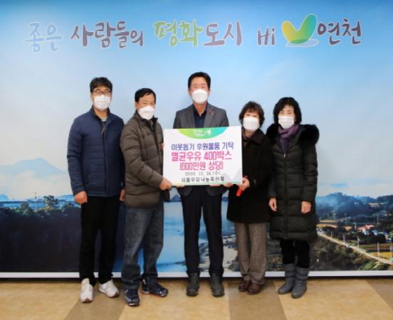 [KNT한국뉴스타임] 연천군은 서울우유 연천군 낙농축산계에서 연말연시를 맞아 관내 어려운 가정에 따뜻한 마음을 전하고자 연천군청을 방문하여 멸균우유 200㎖ 400상자(600만원 상당)의 후원물품을 기탁했다고 밝혔다.