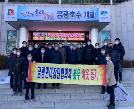 [KNT한국뉴스타임] 안성시 금광면이장단협의회는 지난 16일 관내 저소득층을 위한 이웃돕기 물품 쌀 10kg 38포를 금광면사무소에 기탁했다.