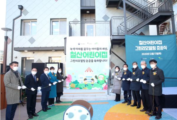광명시는 지난 8월 국토교통부 주관 ‘공공건축물 그린리모델링’ 공모사업에 선정된 시립철산어린이집(광명시 철산동 소재) 리모델링 공사를 무사히 마치고 17일 준공식을 가졌다.