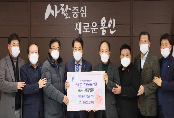 [KNT한국뉴스타임] 용인시는 17일 용인시 이·통장연합회 임원진 8명이 백군기 시장실을 방문해 이웃 돕기에 써달라며 성금 300만원을 기탁했다고 밝혔다.