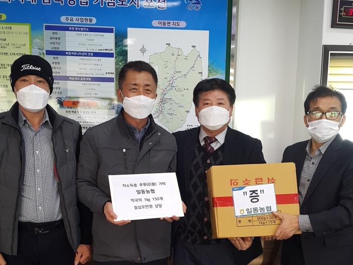 같은날 일동농협 (조합장 김광수)에서는 떡국떡 150kg를 전달했다.