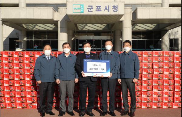 관내 생산공장이 있는 ㈜농심은 저소득층에 전해달라며 라면 700박스를 군포시에 기탁했다.