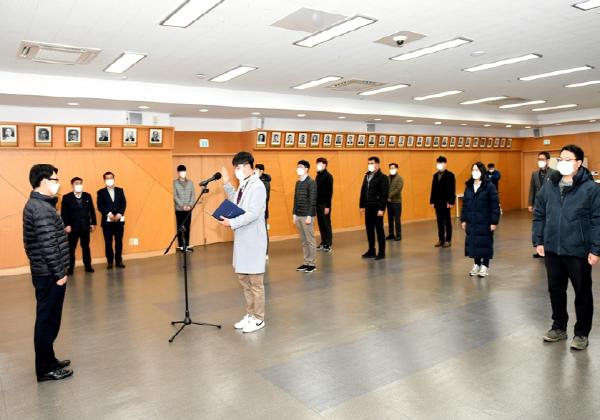 파주시 조기발주 합동설계단은 지난 17일 본관 대회의실에서 발대식을 갖고 공식적인 운영시작을 알렸다. 이날 발대식은 코로나19 확산 방지를 위해 간소화해 치러졌으며 합동설계단 및 토목직 공무원들이 참석해 내수경기 진작과 일자리 창출 등 지역경제 활성화를 위한 합동설계단의 성공적인 추진을 다짐하는 결의문을 낭독했다.