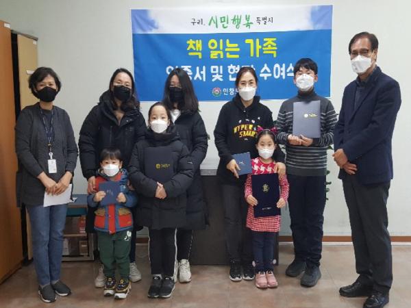 [KNT한국뉴스타임] 구리시는 지난 12월 17일 인창도서관에서 2020년 책 읽는 가족 시상식을 갖고 2가족에 대해 상장과 함께 한국도서관협회 인증서와 현판을 전달했다.