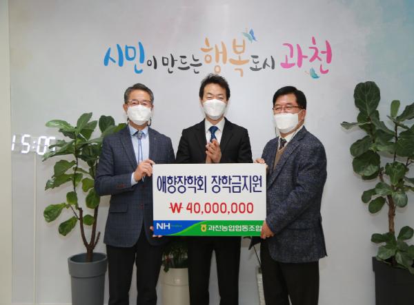 [KNT한국뉴스타임] 재단법인 과천시애향장학회(이사장 김강수)는 18일, 과천농업협동조합(조합장 이경수)으로부터 관내 인재육성을 위한 장학기금 4천만원을 기탁받았다.