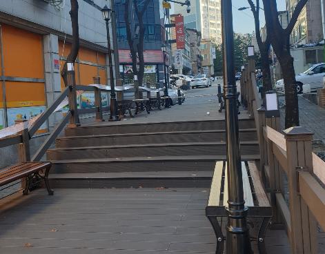 이들은 자투리 공간에 목재데크로 기반을 다지고 벤치와 조명을 설치해 주민 누구나 편리하게 쉼터를 이용하도록 했다.