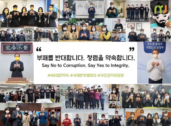 ‘WE대한약속’챌린지는 국민권익위원회가 제19차 국제반부패회의(IACC) 개최를 계기로 전 세계인과 청렴에 대한 인식을 공유하고 참여를 유도하기 위해 실시하는 온라인 청렴 캠페인이다.