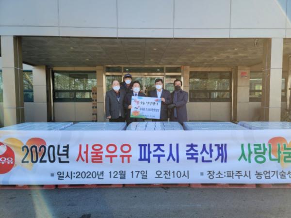 서울우유 파주시 축산계는 어려운 이웃과 함께 추운 겨울을 따뜻한 마음으로 보듬을 수 있는 기회를 마련하고자 매년 1천여만 원 상당의 우유를 후원하고 있다.