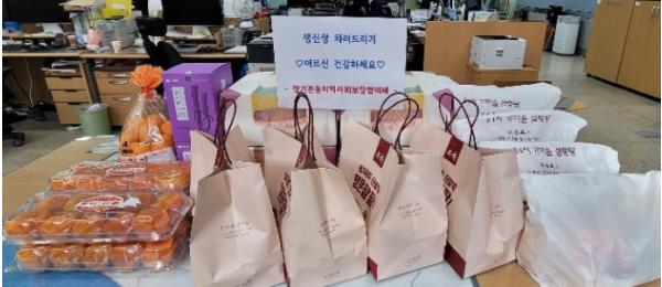 [KNT한국뉴스타임] 김포시 장기본동 지역사회보장협의체는 18일 홀몸 어르신 정서 지원을 위한 생신상 식품 보따리를 비대면 배부로 실시했다.