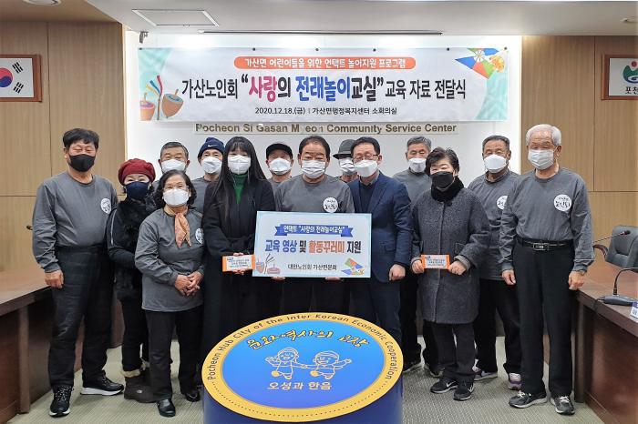 [한국뉴스타임=포천] 대한노인회 포천시지회 가산면분회(분회장 이용근)는 지난 18일 지역 어린이들을 위한「언택트 사랑의 전래놀이 교실」추진을 위해 가산면행정복지센터 소회의실에서 교육자료를 전달했다.