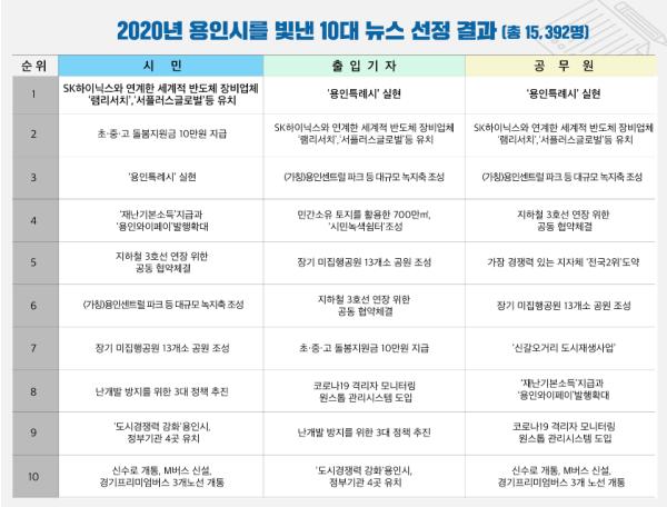 시민이 뽑은 용인시 10대 뉴스의 주요 내용은 다음과 같다.