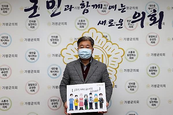 [한국뉴스타임=명기자] 23일 가평군의회 배영식 군의장이 코로나19 상황에서도 대면 노동이 불가피한 필수노동자들을 응원하는 「고맙습니다 필수노동자」 캠페인에 동참했다.