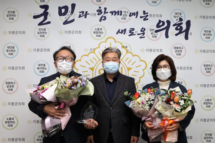 [한국뉴스타임=명기자] 가평군의회 (의장 배영식)는 강민숙 운영위원장(민주.비례), 이상현 군의원(민주.설악청평)이 “제6회 경기도 북부시·군의장협의회 의정대상 " 최우수의원으로 선정됐다고 24일 밝혔다.