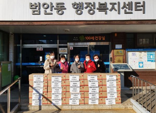 이날 회원 60여 명이 독거노인, 한부모가정 등 어려운 이웃을 위해 쌀국수 50박스를 준비하여 심곡동, 범안동 등 2개 동에 전달했다.