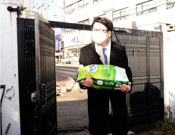코로나19 확산방지를 위해 바깥출입이 힘든 취약계층에게 쌀, 라면, 사과즙 등 10만원 상당의 물품을 비대면으로 배달하고난 뒤 전화로 안부를 묻고 따뜻한 위로의 말을 전했다.