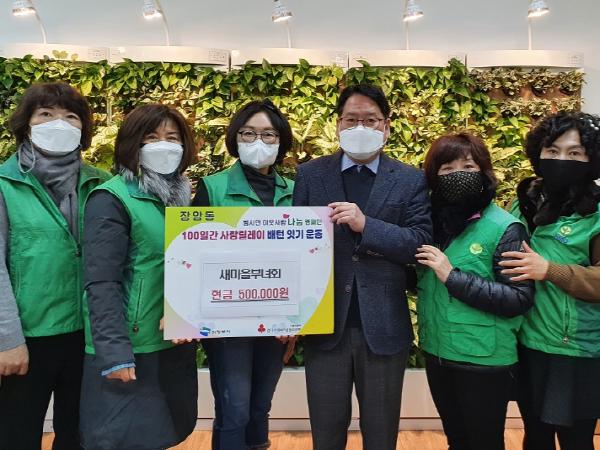 장암동 새마을부녀회는 12월 23일 성금 50만 원을 기탁했다. 부녀회는 올해 초 코로나19가 확산되자 전 회원들이 한마음으로 수제마스크 300매를 제작하여 주민센터에 기탁한 바가 있다. 뿐만 아니라 독거 어르신들을 위한 밑반찬 만들기, 사랑의 김장 김치 나누기 등 다양한 활동을 통해 나눔 문화 만들기 확산에 적극 동참하고 있다.