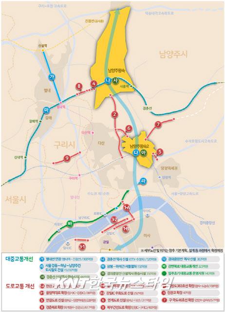 또 철도 이용 편의를 위해 경춘선 역사(GTX-B 정차) 및 경의중앙선 역사를 신설하고, 상봉∼마석 간 셔틀 열차를 운행한다. 별내선과 진접선을 잇는 별내선 연장 사업에도 비용을 분담할 계획이다.