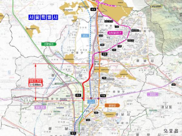 지하철 8호선 판교연장사업은 모란역~판교역을 연결하며 3.86km 연장구간, 정거장 3개소 규모로 총 4239억원이 소요된다. 개통 시엔 원도심과 신도심간 연계성 강화로 지역균형 발전은 물론 판교신도시 교통혼잡완화, 판교테크노밸리의 활성화에 크게 기여할 것으로 기대된다.