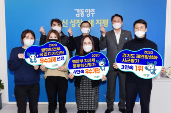 한편 양주시는 지난 11월 제안활성화 우수기관, 국민디자인 우수과제 선정으로 행정안전부장관 표창과 재정인센티브를 수상했으며, 12월에는 3년 연속 경기도 제안활성화 시군평가 1위를 수상하는 등 소통과 참여, 공감의 노력을 대외적으로 인정받은 바 있다.