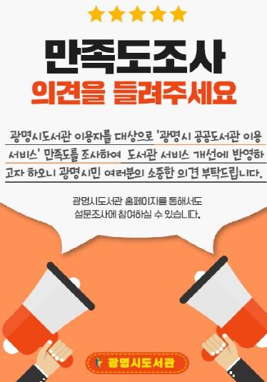 광명시도서관 관계자는 “광명시도서관의 사업방향, 예산반영 등에 시민의 소중한 의견이 반영될 수 있도록 이용만족도 설문에 적극적으로 참여해 주시길 바란다”고 말했다.