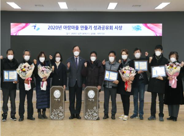 군은 30일 군청 대회의실에서 김성기 군수를 비롯한 마을별 대표들이 참석한 가운데 아람마을(구·희복마을) 만들기 성과공유회 시상식을 가졌다.