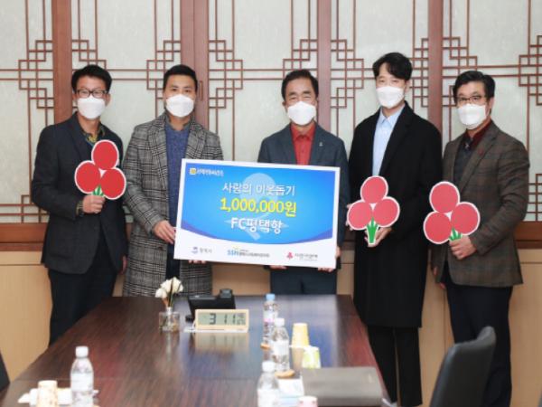 [KNT한국뉴스타임] 평택시는 FC 평택항에서 29일 평택시청 2층 대외협력실에서 지역사회 소외계층을 위해 이웃돕기 성금 100만원을 전달했다.