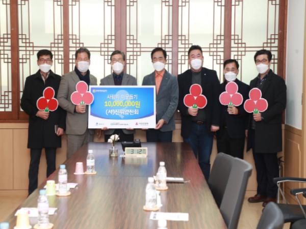 [KNT한국뉴스타임] 평택시 (사)진위약진회는 28일 평택시청 2층 대외협력실에서 평택행복나눔본부에 지역사회 저소득 소외계층을 위해 이웃돕기 성금 1,000만원을 전달했다.