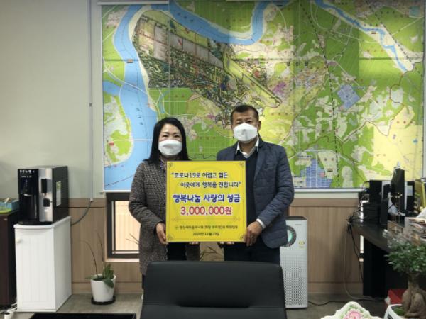 이에 유종복 팽성읍장은 “어려운 여건에서도 지역사회를 먼저 생각하고 온정을 베풀어 주심에 감사드리며, 여러분들이 보여주신 따뜻한 마음이 소외된 이웃들에게는 큰 희망과 용기를 주고 있다”고 화답했다.