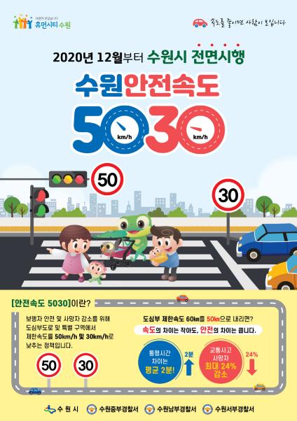 수원시 관계자는 “안전속도 5030 정책의 시행 초기인 만큼 일부 혼란이 있을 수도 있지만, 교통문화 정착을 위해 가족의 안전을 지킨다는 마음으로 시민들의 적극적인 관심과 협조를 요청드린다”고 말했다.