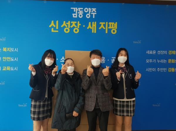 [KNT한국뉴스타임] 양주시 회천4동은 지난해 31일 옥정동 소재 옥정고등학교 학생회(생활지도부장 노하영)에서 행정복지센터를 찾아 관내 소외이웃을 위해 양곡 등 생필품으로 구성된 희망박스 10개를 기부했다고 밝혔다.
