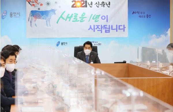 [KNT한국뉴스타임] 용인시는 4일 시청 영상회의실에서 4급이상 간부 공무원과 35개 읍?면?동장이 영상회의 시스템을 활용해 시무식을 갖고 새해 업무를 시작했다고 밝혔다.