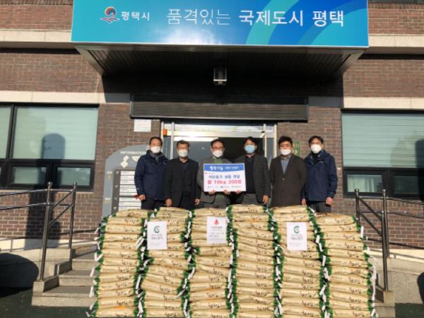 [KNT한국뉴스타임] 평택시 청북읍 소재 ㈜도프는 6일 코로나19 장기화로 어려움을 겪고 있는 이웃을 위해 쌀 10㎏ 200포(560만원 상당)를 평택시 안중출장소에 기탁하며 새해 시작부터 따뜻한 감동을 전했다. 기탁된 성품은 평택 서부권역 5개 읍?면 지역의 저소득 가구 및 복지사각지대에 전달된다.