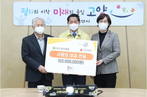 [KNT한국뉴스타임] 고양시는 지난 5일, 1.2.3.골프클럽에서 코로나19 희망 나눔을 위해 사랑의 성금 5천만 원을 기부했다고 밝혔다.